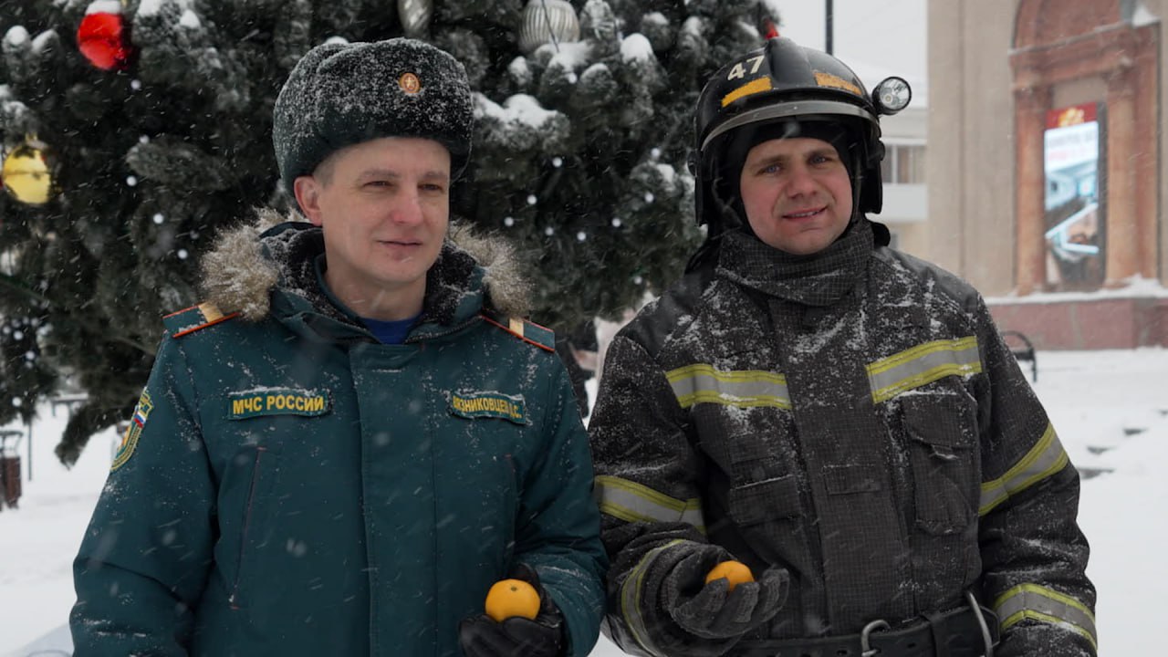 Пожарные вручили миасцам мандарины и памятки по безопасности. Видео