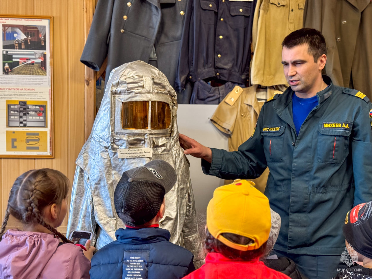 В музее пожарной охраны дети увидели старинные инструменты, обмундирование прошлых лет, фотографии и документы об истории пожарной службы и подвигах её сотрудников.