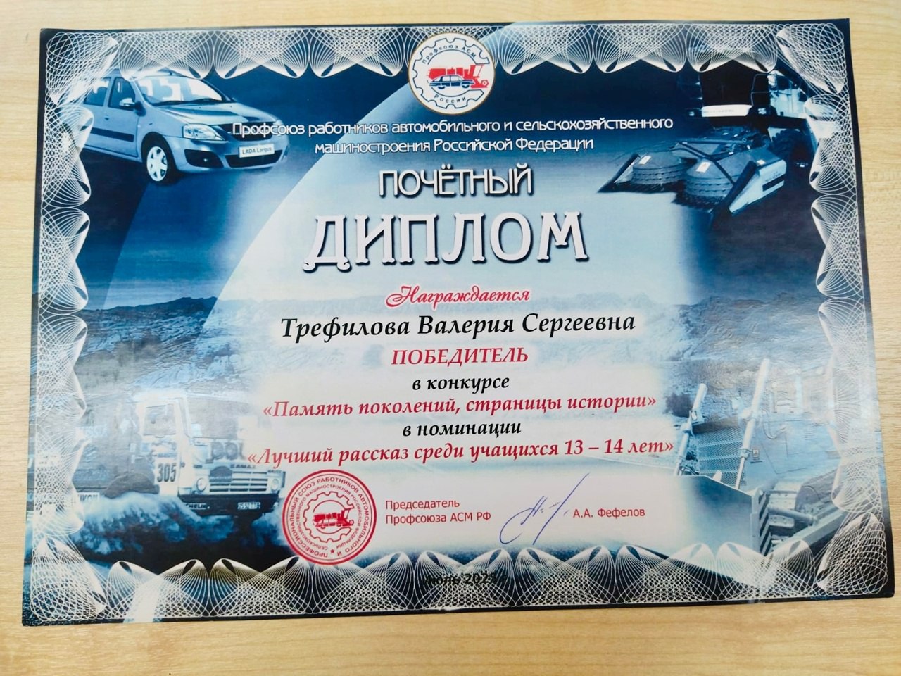 Ученица 9-го класса школы №22 Валерия Трефилова стала победительницей всероссийского конкурса детского творчества «Память поколений — страницы истории». Торжественный финал конкурса состоялся 17 октября в ФГУП «НАМИ» в рамках ежегодного празднования Дня машиностроителя, организованного Российским профессиональным союзом автомобильных строителей (АСМ РФ) и ассоциацией «Объединение автопроизводителей России» (ОАР).