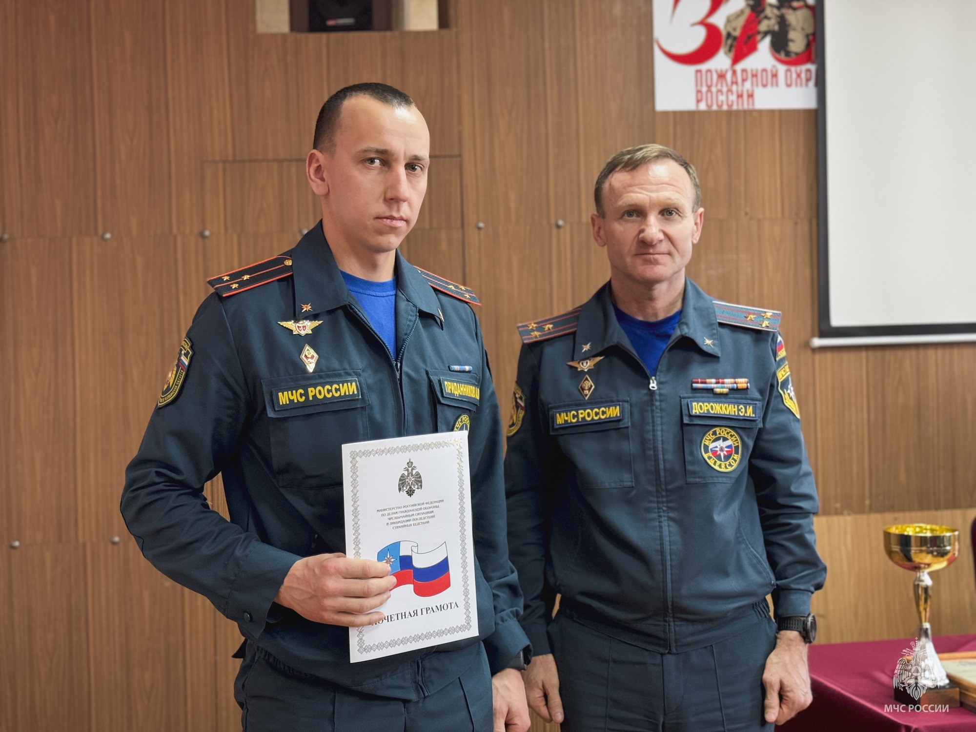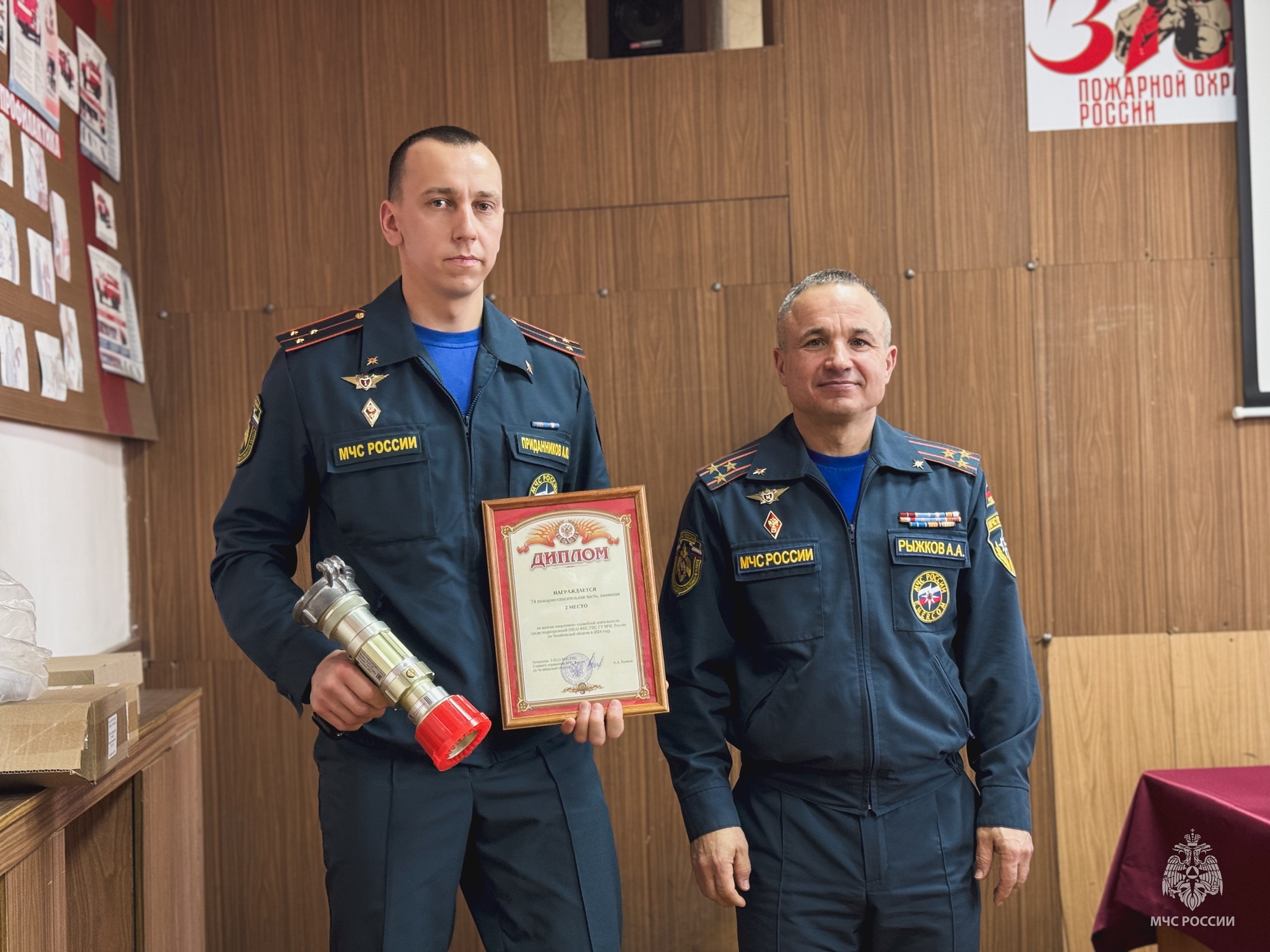 Кроме того, за успехи в службе почётной грамотой МЧС России был награждён начальник 74 пожарно-спасательной части Александр Приданников.